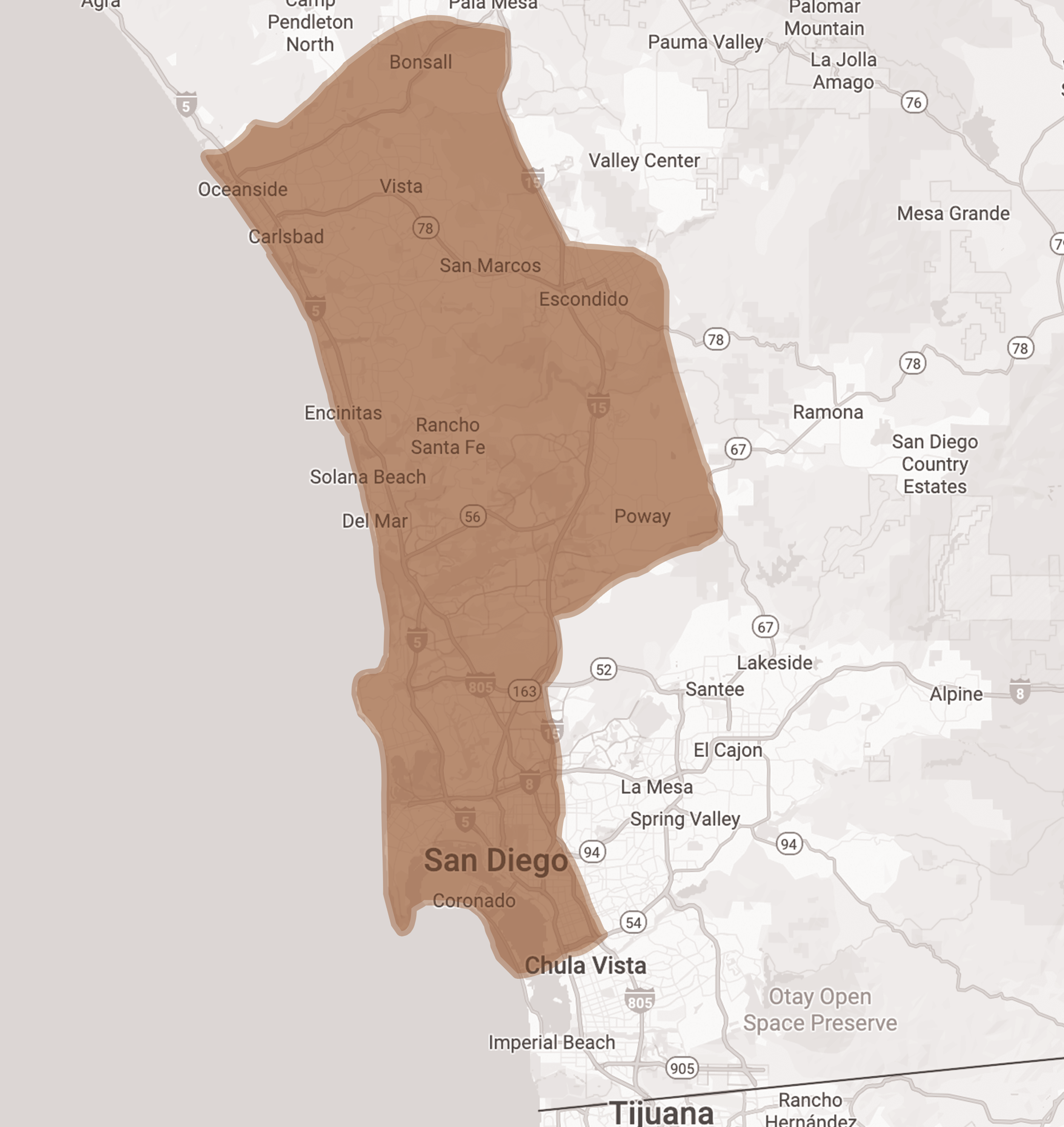 We happily service all of North County, San Diego. Think you may be out of our service area? Give us a call, and we’ll see what we can do!